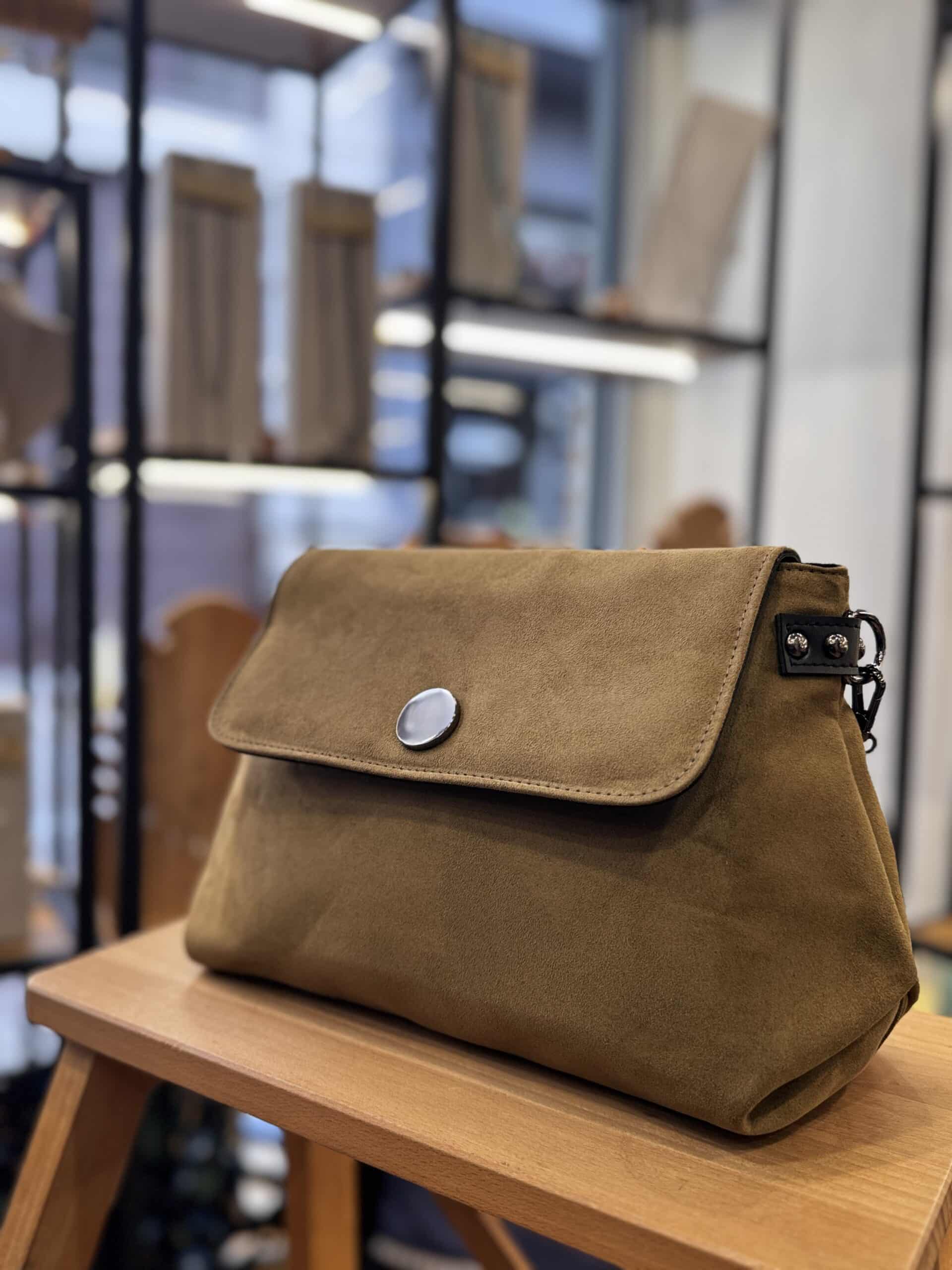 Τσάντα Χιαστί Suede Πράσινο Λαδί 2