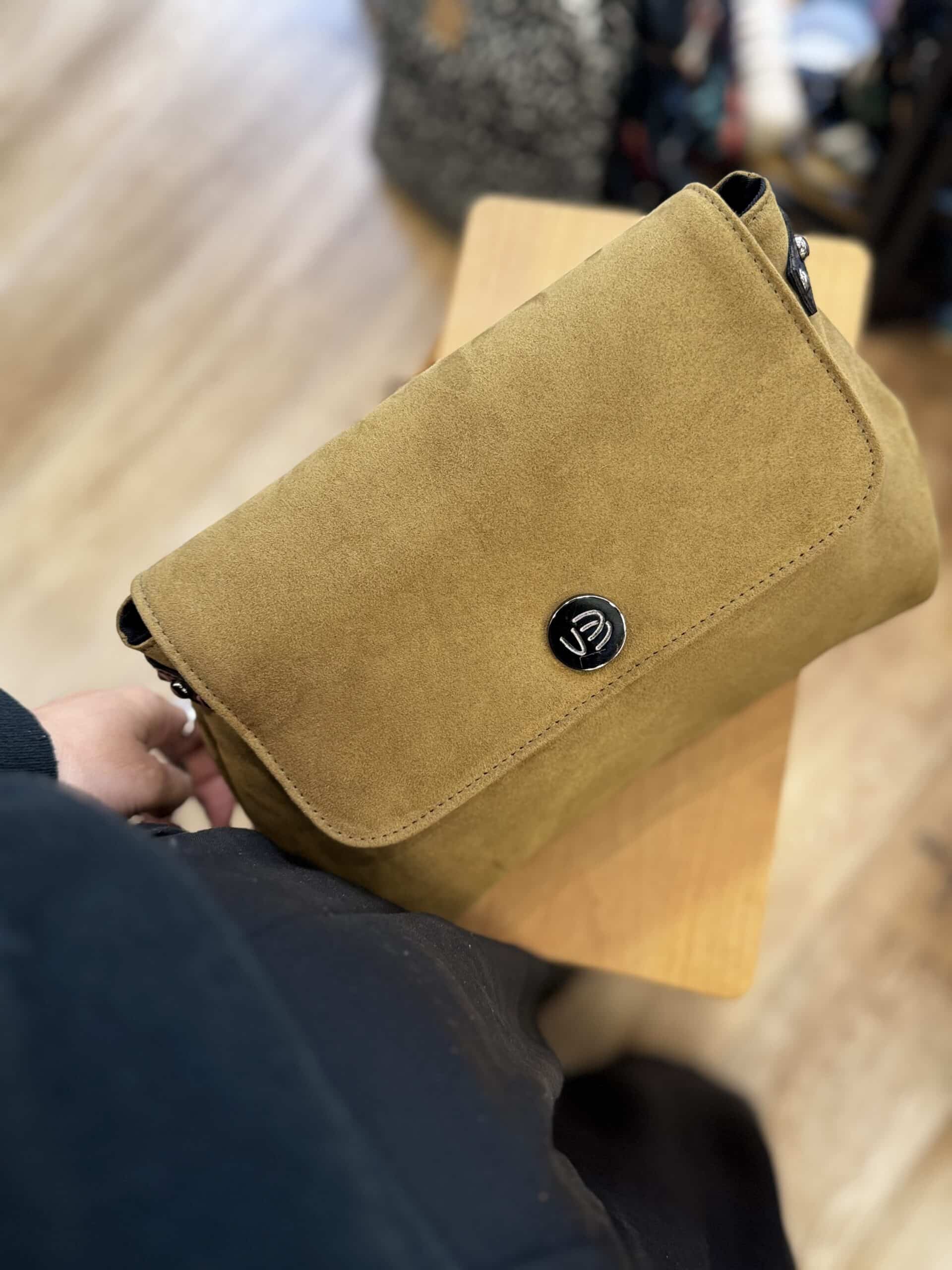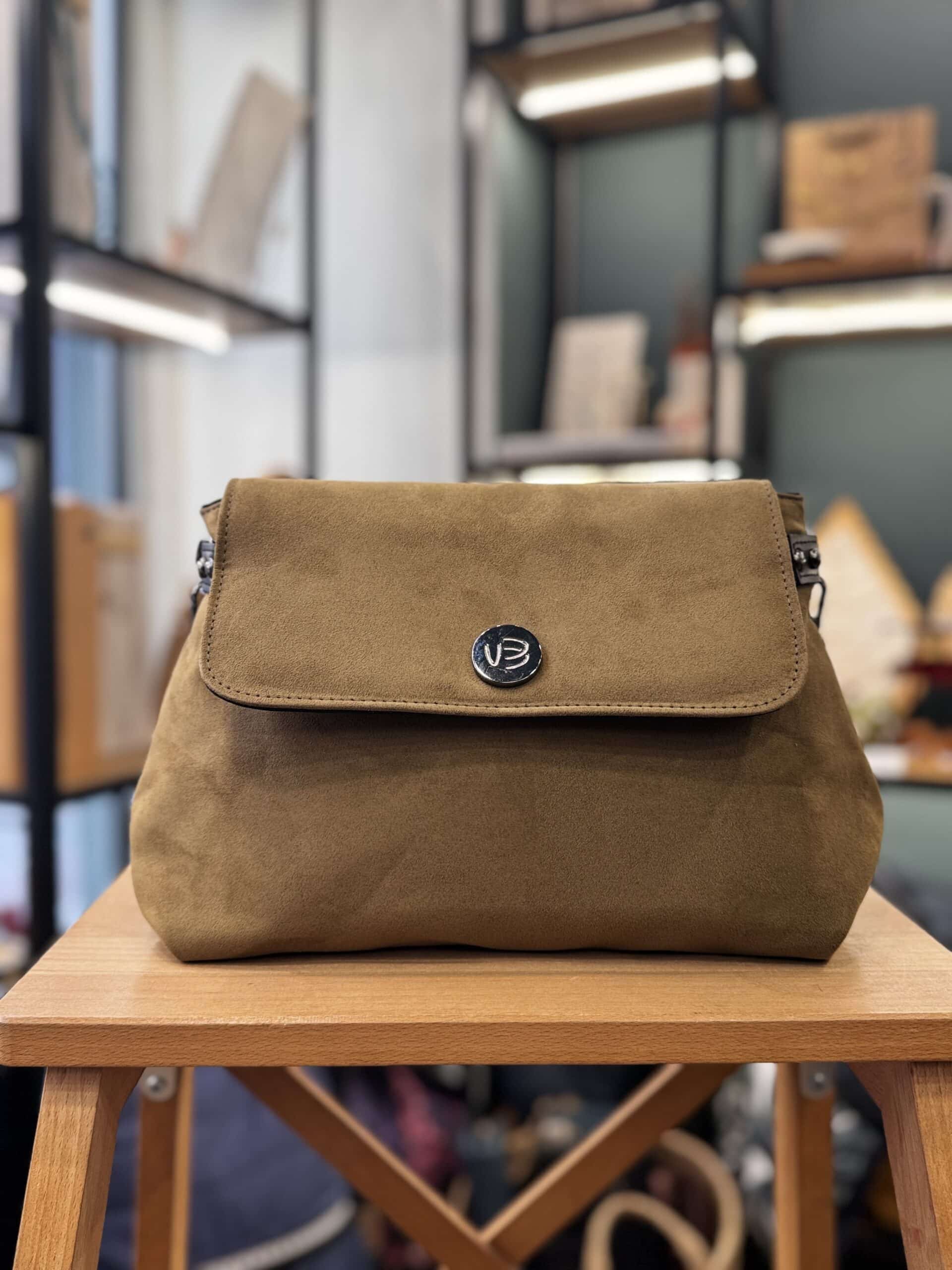 Τσάντα Χιαστί Suede Πράσινο Λαδί