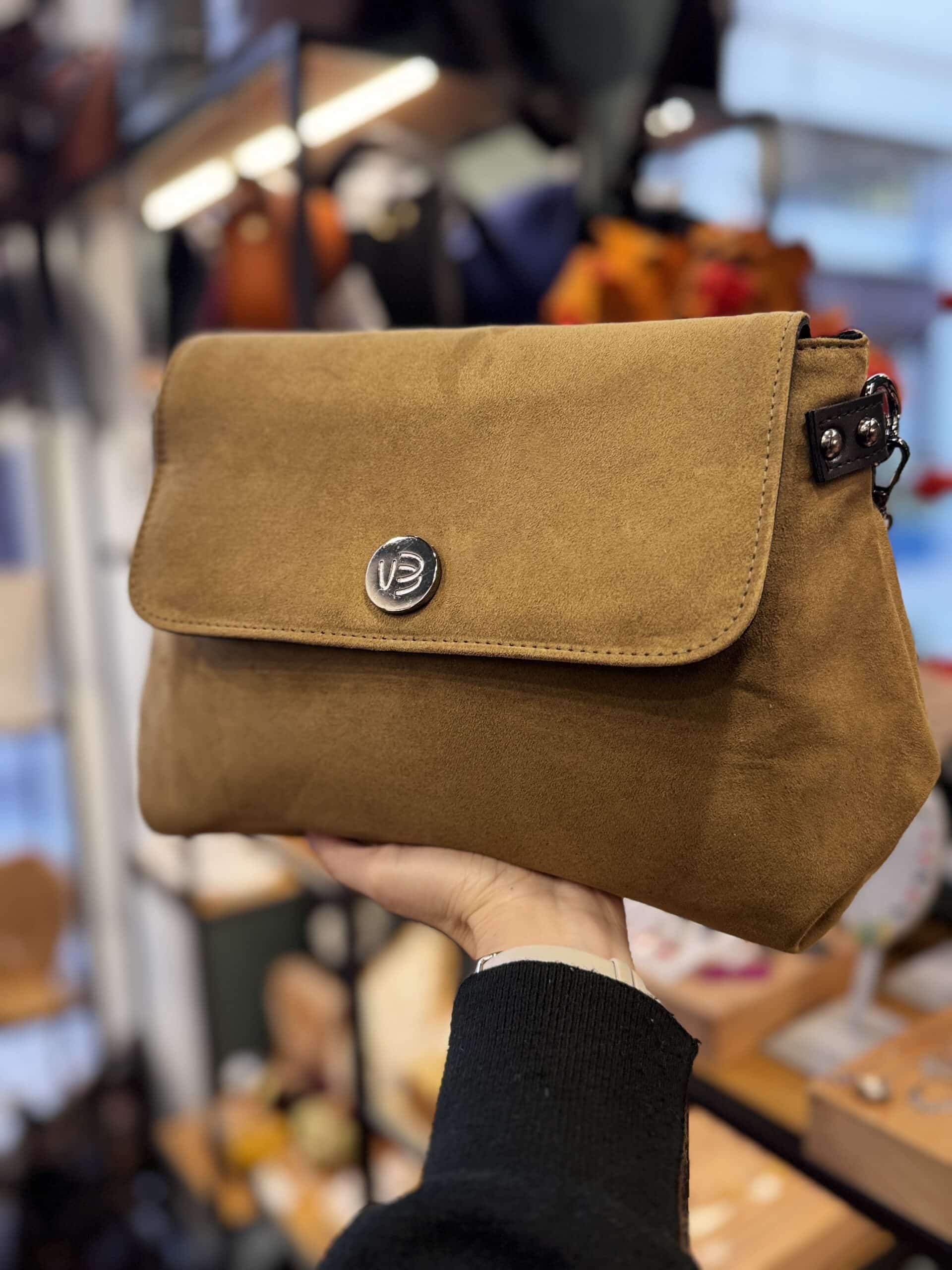Η απαλή υφή του suede και ο πρακτικός της σχεδιασμός την κάνουν μια τσάντα που φοριέται εύκολα όλες τις ώρες από το πρωί μέχρι τη βραδινή σας έξοδο.